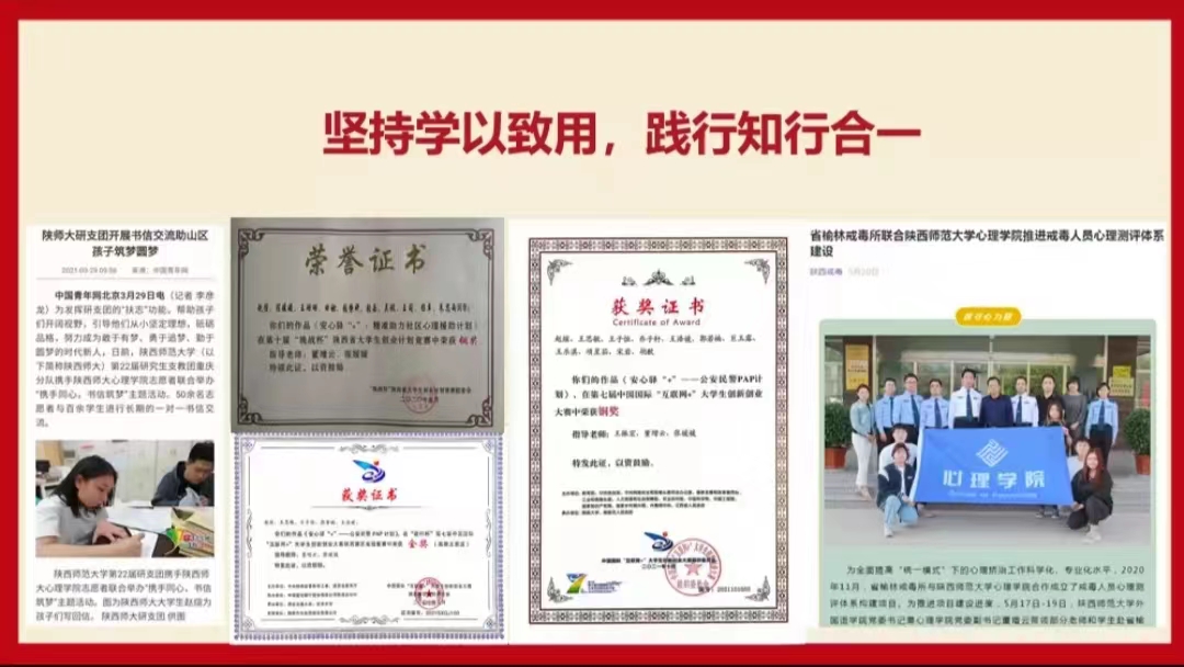 为帮助新生解答在专业学习与校园生活等方面的疑惑,让新生近距离了解老员工活,99日上午,2022级本科生新生入学教育系列讲座之优秀学子经验交流分享会在腾讯会议平台举行,公司2022心理学专业本科毕业生赵煊以“青衿之志,履践致远”为主题进行了分享,辅导员武士豪主持