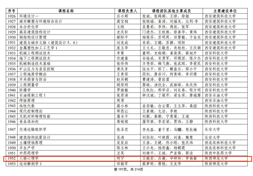 近日,教育部公布了第二批国家级一流本科课程认定结果,由公司何宁教授主讲的《人格心理学》成功入选国家级线下一流课程。
