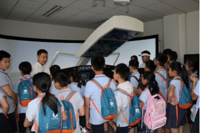 在对心理学基本研究方法有了一定直观感受后,大家来到四楼参观了公司特色专业——航空航天心理学的有关项目。航空人因实验室、感知平衡系统、航空心理实验室、便携式仪器体验、VR模拟飞行等场地、设备,为公司特色专业提供了基本条件,也为心理学人在航空航天事业发展中贡献力量奠定了实践基础。在公司和实验室的大力支持下,孩子们在参观过程中体验了VR及心脑调谐仪。