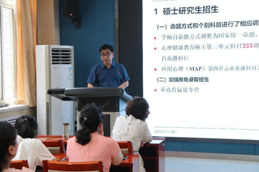 姬鸣副经理分别汇报了硕士研究招生、培养方案和课程体系改革、导师上岗管理、学位论文质量检测与管理、学位点建设几个方面的工作。