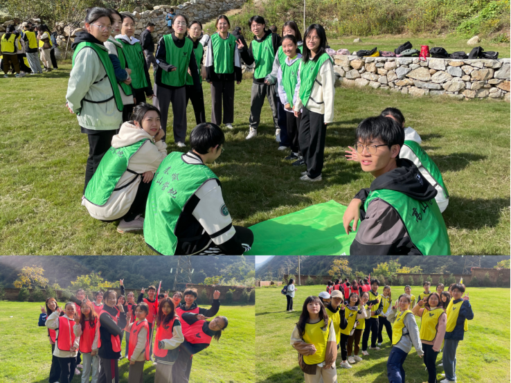 在教练的引导下,同学们分为三支队伍,并确定各自的队名、口号、队歌,每队进行集中展示,提升队伍的集体荣誉感,随后各支队伍进行2.5公里山野徒步,在鼓舞飞扬、厨艺比拼、垫背传字、高空挑战等项目中,培养团队融合能力,鼓励同学们挑战自我,打破固有思维,在通力合作下战胜困难,让团队的力量绽放青春绚丽的色彩。