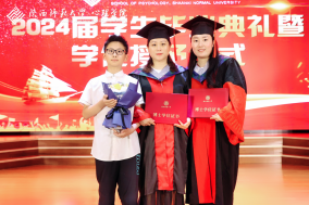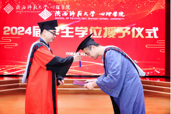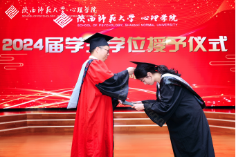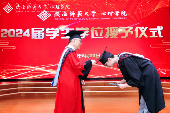李瑛教授主持学位授予仪式。学位分委员会副主席姬鸣教授宣读授予学位文件。心理学分会主席何宁教授、副主席姬鸣教授、委员罗扬眉教授和委员兰继军教授分别为获得博士学位、硕士学位和学士学位的毕业生发放学位证书并拨穗。