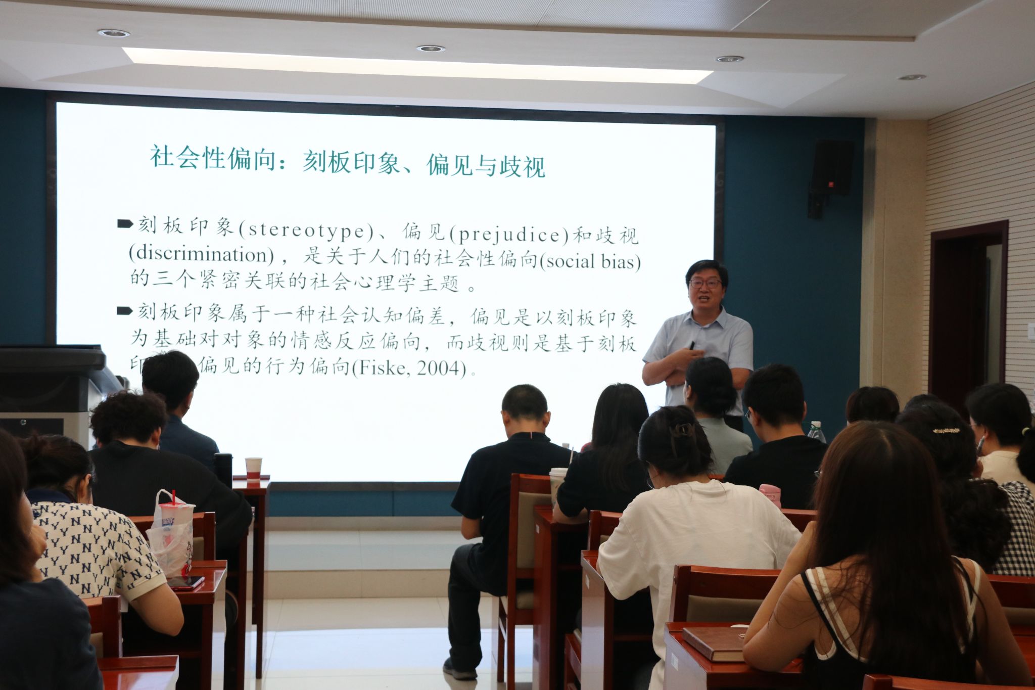在本次讲座中,佐斌教授梳理了群体刻板印象的研究脉络,分别讲解了刻板印象的研究基础、刻板印象的形态与维度、刻板印象的后效等内容。佐斌教授结合自身所做研究,对刻板印象的两阶段加工模型、群体对反刻板印象个体的抵制等内容进行了详细介绍,并对群体刻板印象研究的趋势进行了梳理。随后,佐斌教授对刻板印象的深化研究进行了介绍,结合具体研究案例,向老师及同学们介绍了中国文化框架下的社会群体刻板印象理论建构等前沿理论。与欧美学者提出的刻板印象二维度理论不同,社会群体刻板印象理论建构强调社会资源及社会贡献对个体印象形成的影响,与中国的文化框架更为契合。最后,佐斌教授指出,研究群体刻板印象,对于理解人际与群际关系、调和群际矛盾、实现各社会群体和谐共存具有重要的理论和现实意义。